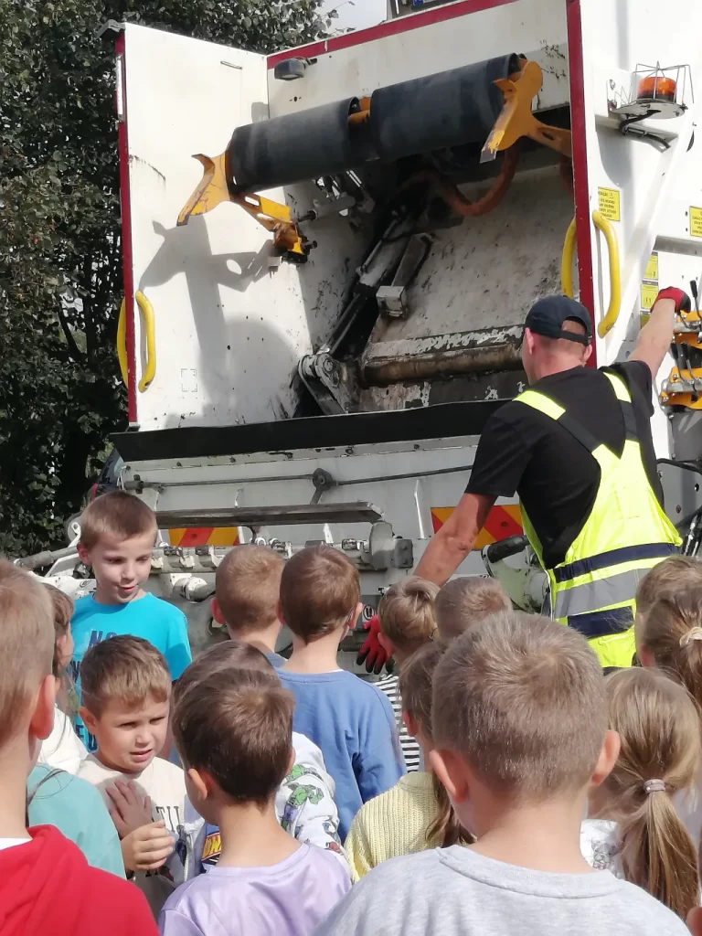 Dla wielu dzieci była to pierwsza okazja, by przyjrzeć się z bliska pojazdowi, który na co dzień mija się na ulicy. Dzieci zadawały wiele pytań – o to, ile śmieci mieści się w takim pojeździe, jak często odbywa się wywóz odpadów w ich miejscowości czy co dzieje się z odpadami po zabraniu ich z posesji.